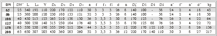 Přírubový spoj s rozměry dle ČSN 13 1060 a ČSN 13 1061. Připojovací příruba přepouštěcího kanálu dle PN 100. Stavební délky dle ČSN EN 558. Základní stavební a připojovací rozměry jsou uvedeny v tabulce.
